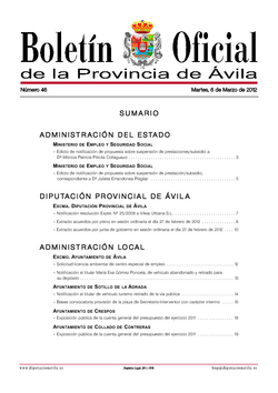 Listado de los anuncios publicados en el boletín del martes, 6 de marzo de 2012