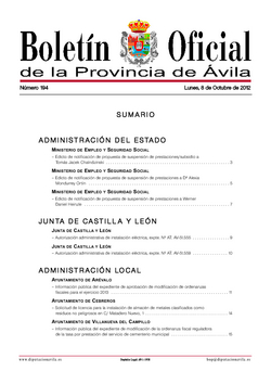 Listado de los anuncios publicados en el boletín del lunes, 8 de octubre de 2012