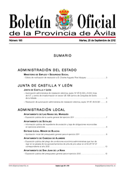 Listado de los anuncios publicados en el boletín del martes, 25 de septiembre de 2012