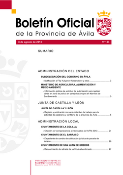 Listado de los anuncios publicados en el boletín del jueves, 8 de agosto de 2013