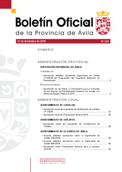 Listado de los anuncios publicados en el boletín del jueves, 27 de diciembre de 2018