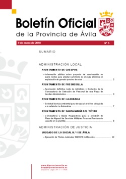 Listado de los anuncios publicados en el boletín del miércoles, 9 de enero de 2019