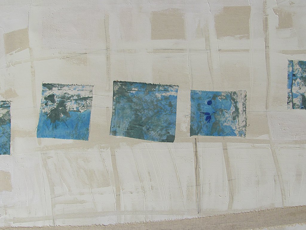 - La tercera introduce el uso innovador de dos soportes: bastidor al aire y sobre él la obra y ausencia total de soporte, apareciendo la pintura sobre lino o tela, tratados mínimamente. Las composiciones se presentan como "collages" con telas teñidas por la propia artista y diversidad de materiales como papel vegetal, cuerda, alambre, etc.