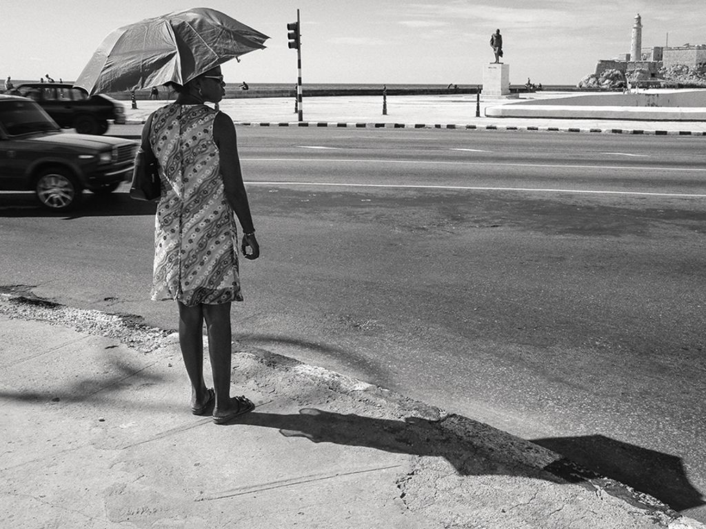 Aunque son escenas callejeras, el tiempo parece detenido, también los retratados, como si esa isla que quiso ser el paraíso sesteara mientras espera. En las imágenes, lo visible abraza lo invisible. En las nítidas sombras que proyectan las figuras arde el sol del Caribe. En el torso desnudo de los bañistas rumorea el cálido mar de las Antillas, que ciñe la isla como un amante celoso. En los números atrasados del periódico Granma que vende un anciano el pasado se cae a pedazos, igual que el centro de La Habana. En las sonrisas de los niños bulle la vida, que empuja a ciegas. En cada personaje se oculta una multitud. Cualquier hombre es todos los hombres.