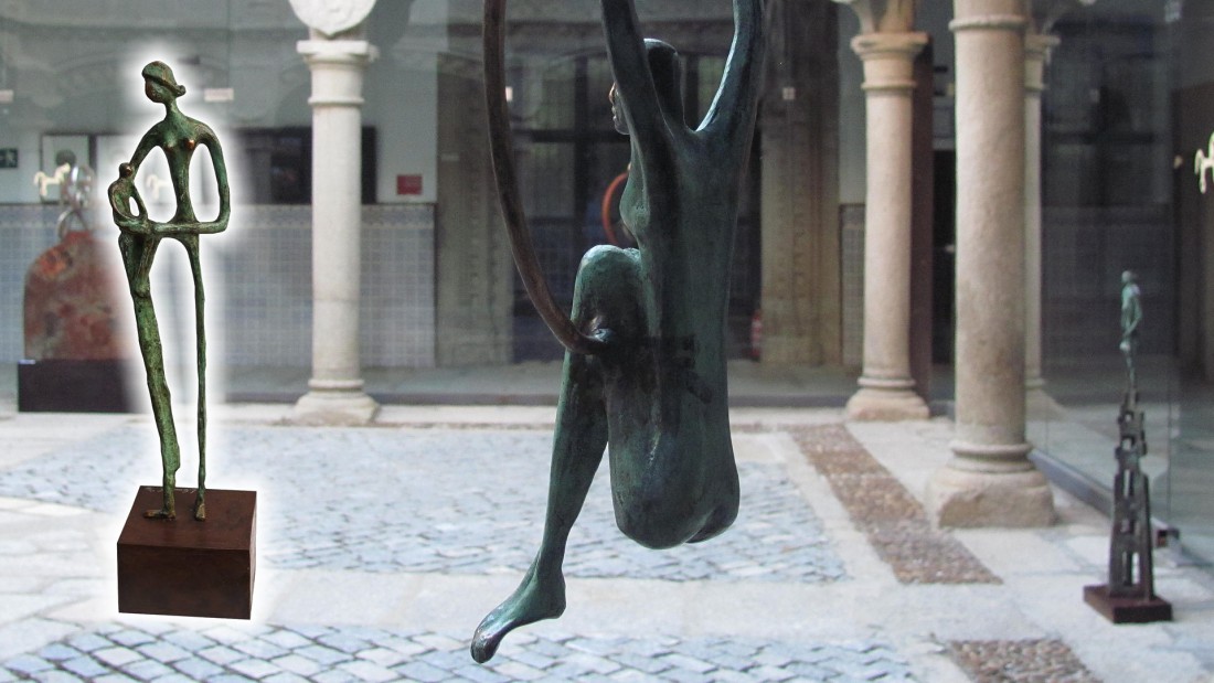 Esta exposición recoge las obras que he realzado en estos últimos años. Siempre buscando con la sencillez de sus formas alargadas y simplificadas su espiritualidad, soltura y movimiento. El bronce, hierro y aluminio son materiales que uso en mis esculturas.