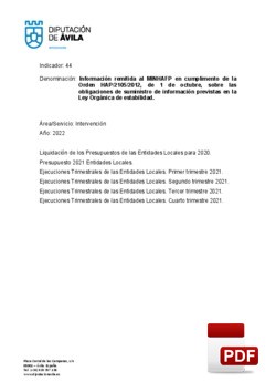 Información remitida al MINHAP en cumplimiento de la Orden HAP 2105/2012, de 1 de octubre