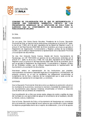 2025-0339.- Expediente 10293/2025 - Convenio de colaboración con el Ayuntamiento de Navaluenga para el apoyo a la publicación de un libro.