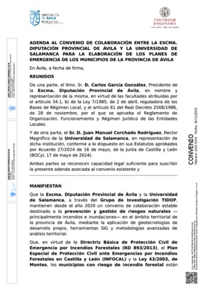 2025-0341.- DA0061 - Convenios administrativos y de colaboración, acuerdos de cooperación, adhesión a entidades -- SIA 1786748 -- 3802 SPEIS -- Expediente 9478/2025 -- S4711001J Servicio de Incendios Forestales, 06580000E Diego González Aguilera, U01400001 Universidad de Salamanca -- Otros - ADENDA AL CONVENIO DE COLABORACIÓN ENTRE LA EXCMA. DIPUTACIÓN PROVINCIAL DE ÁVILA Y LA UNIVERSIDAD DE SALAMANCA PARA LA ELABORACIÓN DE LOS PLANES DE DEFENSA DE LOS MUNICIPIOS DE LA PROVINCIA DE ÁVILA --