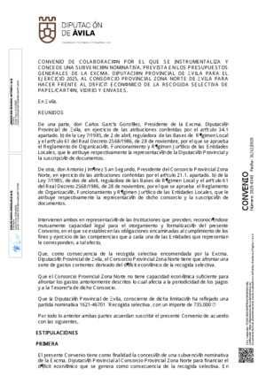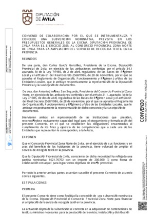 2025-0342.- Convenio con Consorcio Provincial Zona Norte de Avila --Recogida textil --
