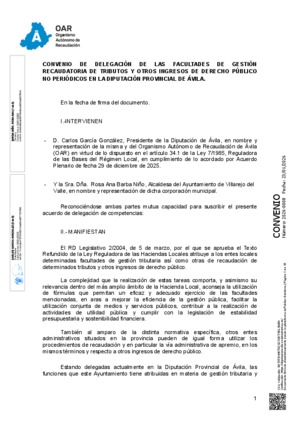 2026-0008.- Convenio delegación facultades de gestión recaudatoria de recursos no periódicos - Ayuntamiento de Villarejo del Valle
