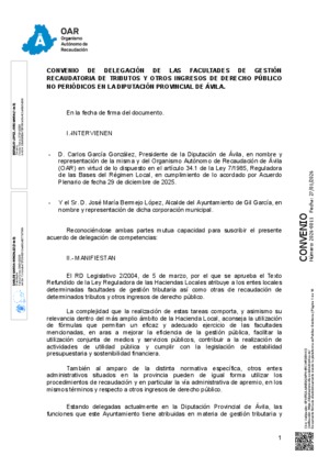 2026-0011.- Convenio delegación facultades de gestión recaudatoria de recursos no periódicos - Ayuntamiento de Gil García