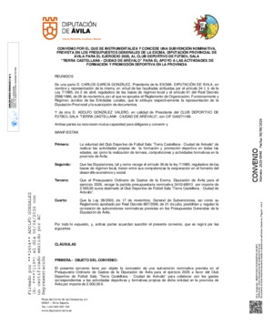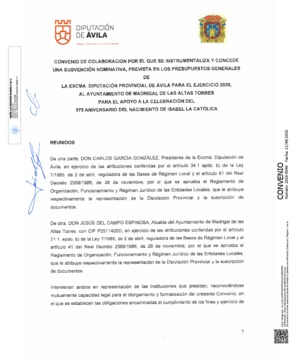 Listado de los últimos convenios aprobados por la Diputación de Ávila