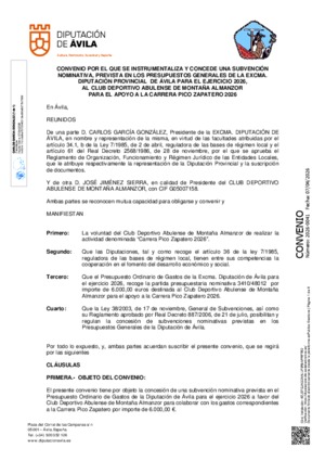 2026-0041.- Expediente 740/2026 - Convenio de Colaboración con el Club Deportivo Abulense de Montaña Almanzor para apoyar la Carrera Pico Zapatero 2026