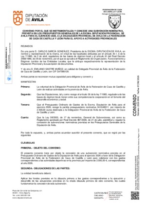 2026-0042.- Expte: 702/2026 Convenio de colaboración con la Delegación Provincial de Ávila de la Federación de Caza de Castilla y León para el apoyo a actividades provinciales 2026