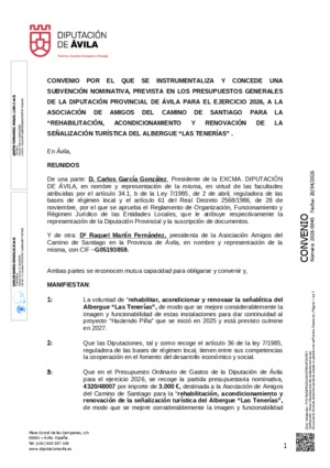 2026-0045.- DA0537 - Subvenciones nominativas -- SIA 2838110 -- 2311 TURISMO (Tramitación) -- Expediente 3282/2026 -- G05193859 ASOCIACION AMIGOS DEL CAMINO DE SANTIAGO EN AVILA -- Convenio de la Asociación de los Amigos del Camino de Santiago --