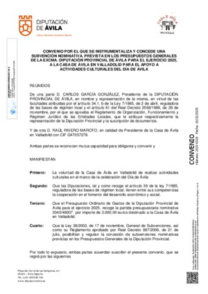 2025-0328.- Expediente 10294/2025 -- Convenio de colaboración con la Casa de Ávila en Valladolid para el apoyo a la celebración del Día de la Casa de Ávila.