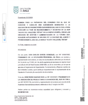 2025-0335.- CONVENIO ASOCIACIÓN PRODUCTORES OLIVAREROS DEL SUR DE ÁVILA. AÑO 2025