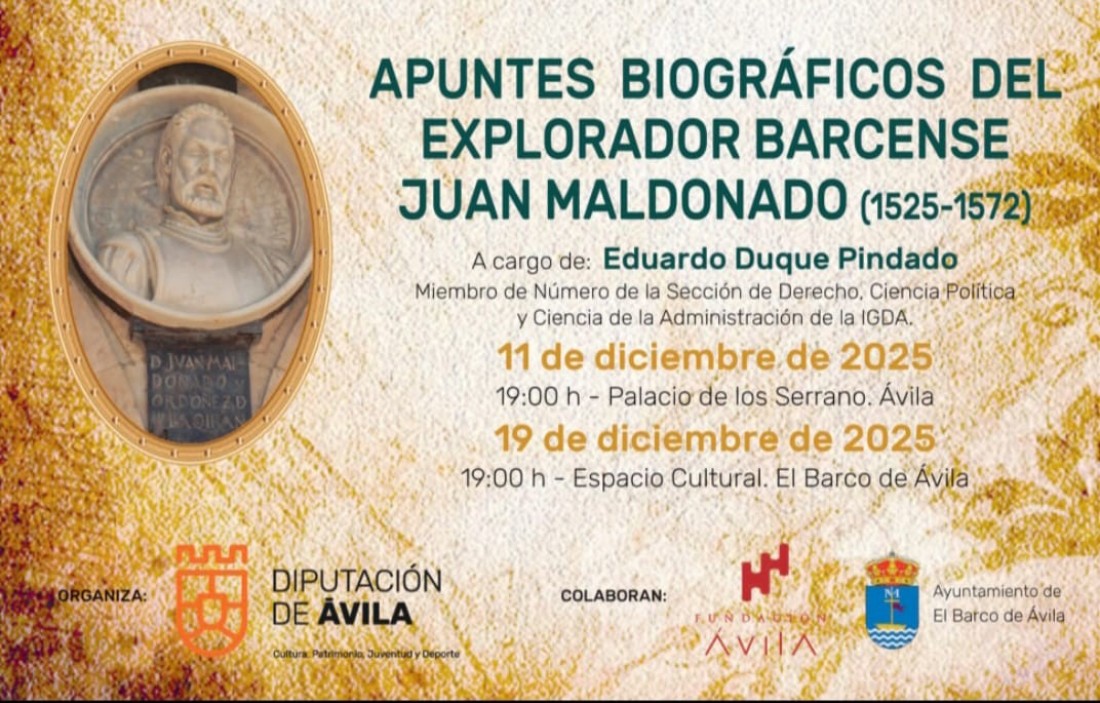El conquistador Juan Maldonado (1525-1572), natural de El Barco de Ávila, protagoniza una nueva conferencia del ciclo ‘Centenarios de abulenses ilustres’ de la Institución Gran Duque de Alba (IGDA). La pronunciará el jueves, 11 de diciembre, desde las 19 horas en el Auditorio del Palacio Los Serrano, Eduardo Duque, miembro de Número de la Sección de Derecho, Ciencia Política y Ciencia de la Administración de la IGDA.