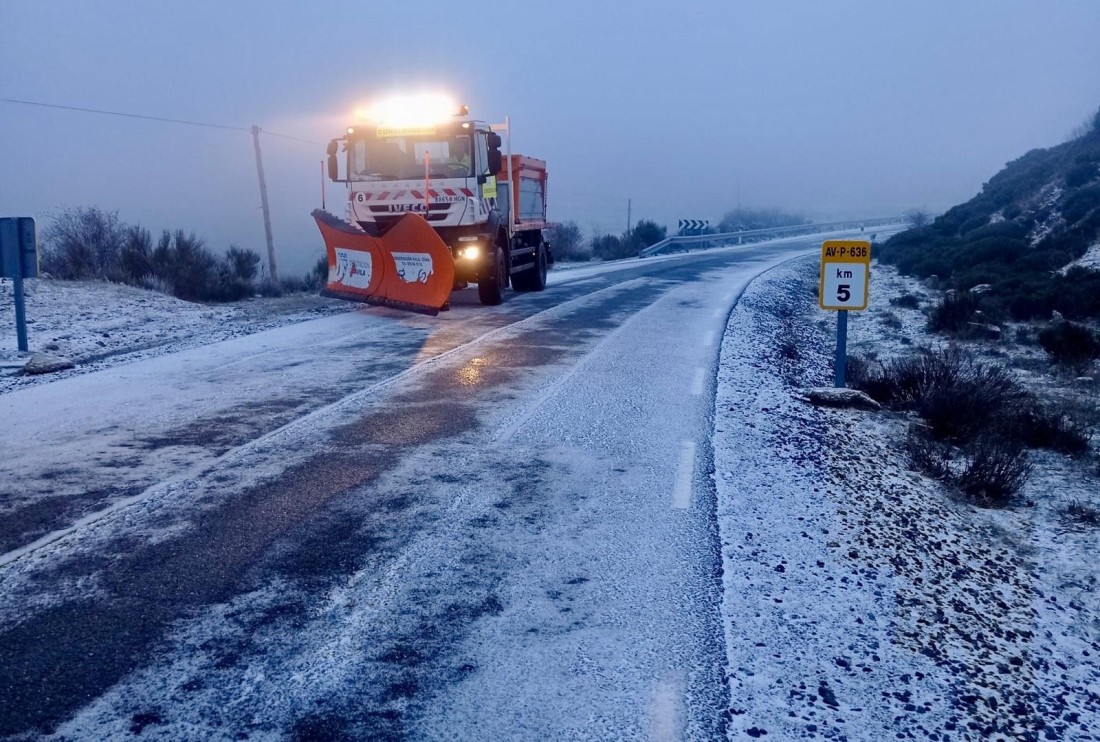 35 operarios y 14 quitanieves del dispositivo de vialidad invernal de la DIPUTACIÓN DE ÁVILA han trabajado durante este Día de Reyes para hacer frente a las importantes heladas que afectan a la provincia. 802 kilómetros de la red de carreteras provinciales, es decir, prácticamente ocho de cada diez, han sido tratados con fundentes y maquinaria pesada para retirar placas de hielo y la escasa nieve que ha caído sobre las vías. “Ha sido un día complejo en el que nuestros trabajadores han dado el todo por el todo esparciendo casi 90 toneladas de fundentes. A todos ellos y a los conductores que han extremado la prudencia solo podemos darles las gracias”, ha valorado el diputado de Cooperación Económica e Infraestructuras, Félix Álvarez.