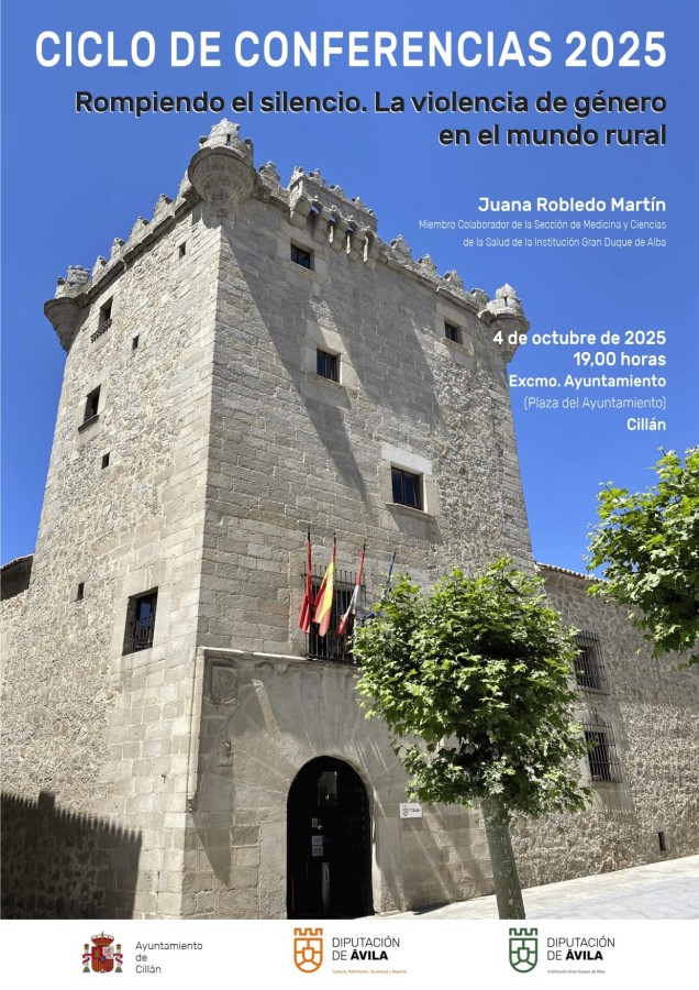 ‘Rompiendo el silencio. La violencia de género en el mundo rural’ es el título de la conferencia que, dentro del ciclo 2025 que la Institución Gran Duque de Alba (IGDA) organiza en municipios de menos de 500 habitantes de la provincia, tendrá lugar en Cillán este sábado, 4 de octubre, a partir de las 19 horas en el Ayuntamiento. Será impartida por Juana Robledo Martín, doctora en Antropología Social y Cultural y diplomada en Enfermería por la Universidad de Salamanca, y miembro colaborador de la Sección de Medicina y Ciencias de la Salud de la IGDA.