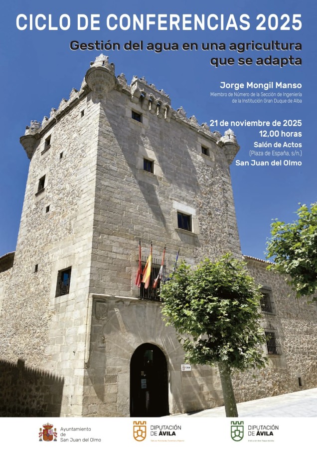 El Salón de Actos de San Juan del Olmo será el escenario de la decimosexta y última conferencia del Ciclo 2025 de la Institución Gran Duque de Alba (IGDA) mañana viernes a las 12 horas. En este caso, la exposición versará sobre la gestión del agua en las actividades agrícolas y correrá a cargo de Jorge Mongil, miembro de Número de la Sección de Ingeniería.